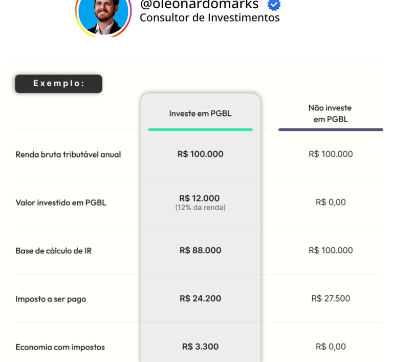 Você sabia que pode deduzir até 12% da renda tributável investindo em PGBL até dezembro? Além de economizar no IR, você garante planejamento sucessório e uma aposentadoria mais sólida. Descubra como funciona e simule sua economia agora!
