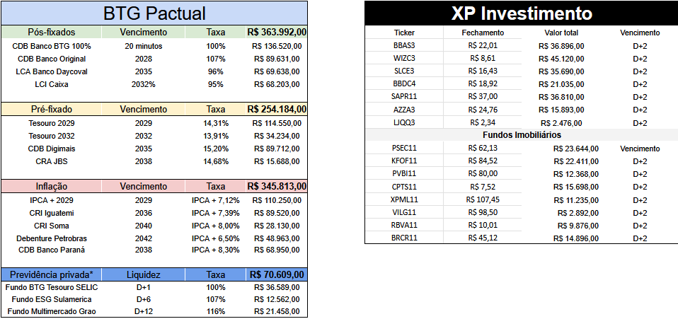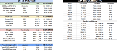 Nesse exemplo, separei renda fixa e Renda variável, mas também é possível deixar fundos de investimentos, private equity, ativos de renda fixa congelados na XP.
